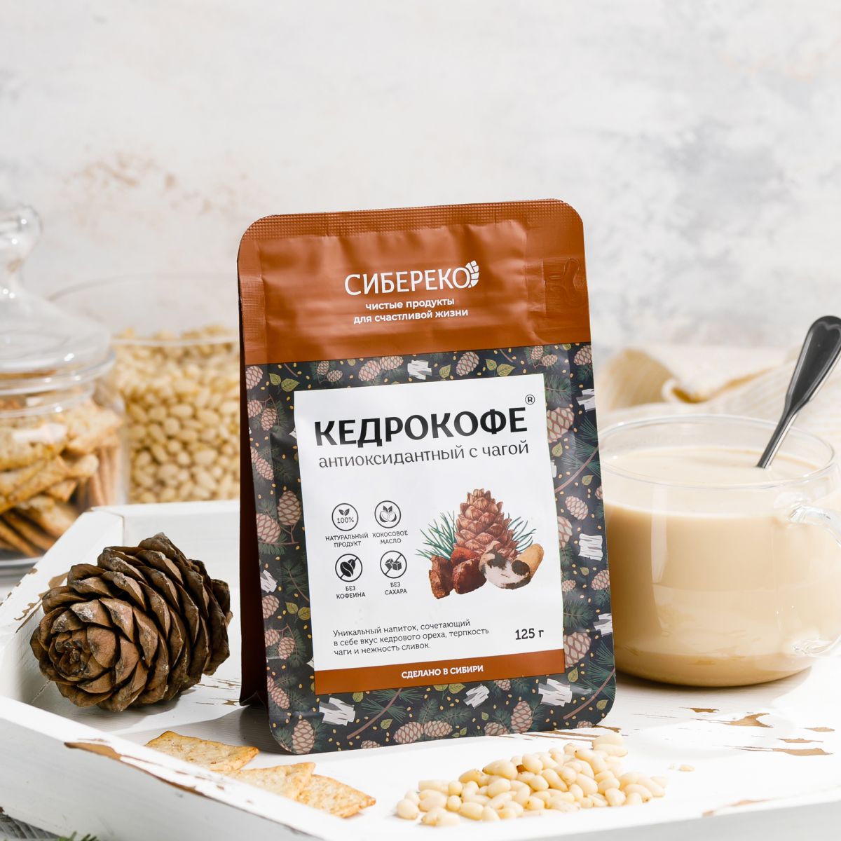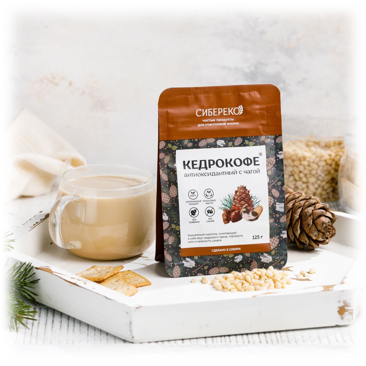 Кедрокофе антиоксидантный - напиток, наделенный важнейшей миссией. Благодаря экстракту чаги в составе, он защищает Ваш организм от свободных радикалов. Необычный вкус напитка станет приятным дополнением к любой трапезе.