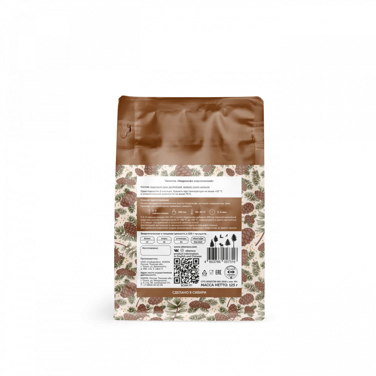 Читать все статьиКедрокофе классический Квадропак 125 г
