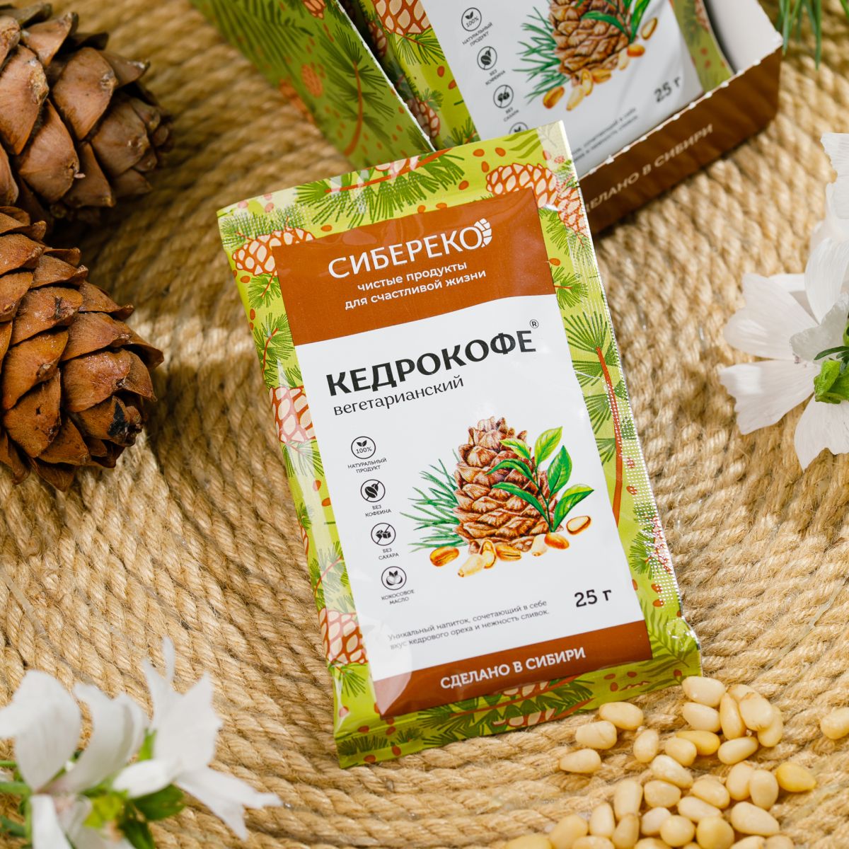 Кедрокофе Вегетарианский - нежный Сибирский горячий напиток, созданный с заботой о природе! Сладость кедрового ореха и мягкий молочный вкус подарят Вам удовольствие и пробудят энергию для новых свершений!