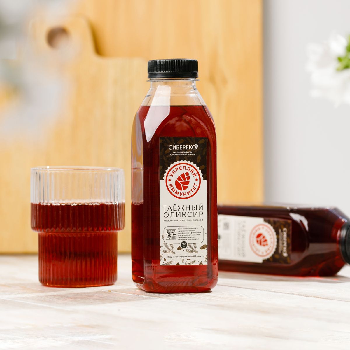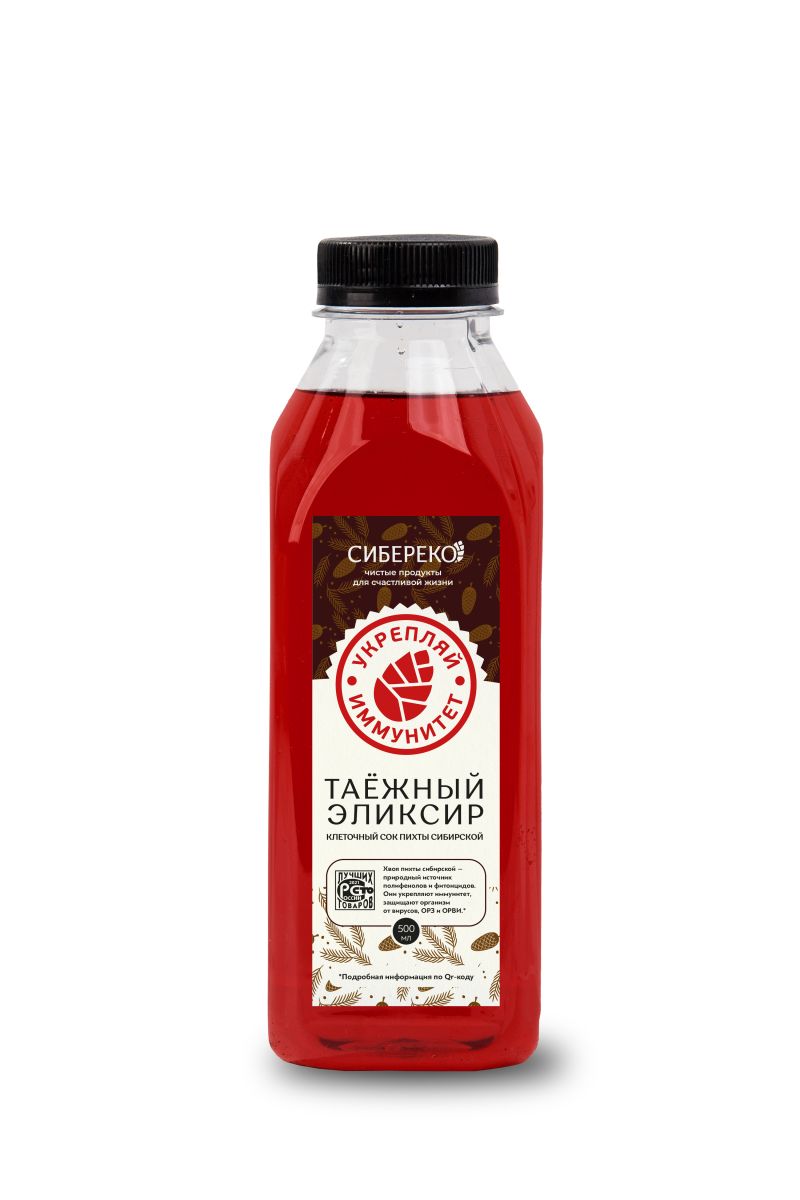Таёжный эликсир — клеточный сок пихты сибирской, бережно добытый и представленный в удобном формате напитка от компании "Сибереко". Пихтовая хвоя, из которой добывают сок, содержит витамины, фенольные кислоты, мальтол, флавоноиды, которые надёжно защищают иммунитет человека в периоды стрессов и простуд, укрепляет иммунитет оказывает противовоспалительное действие при заболеваниях дыхательных путей снижает вред от воздействия окружающей среды (высокая концентрация выхлопных газов, недосып, быстрые перекусы).