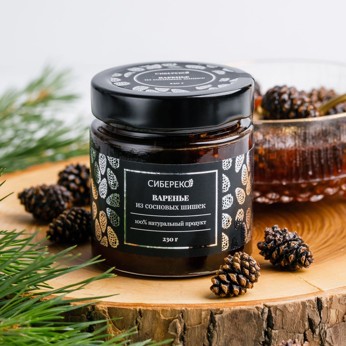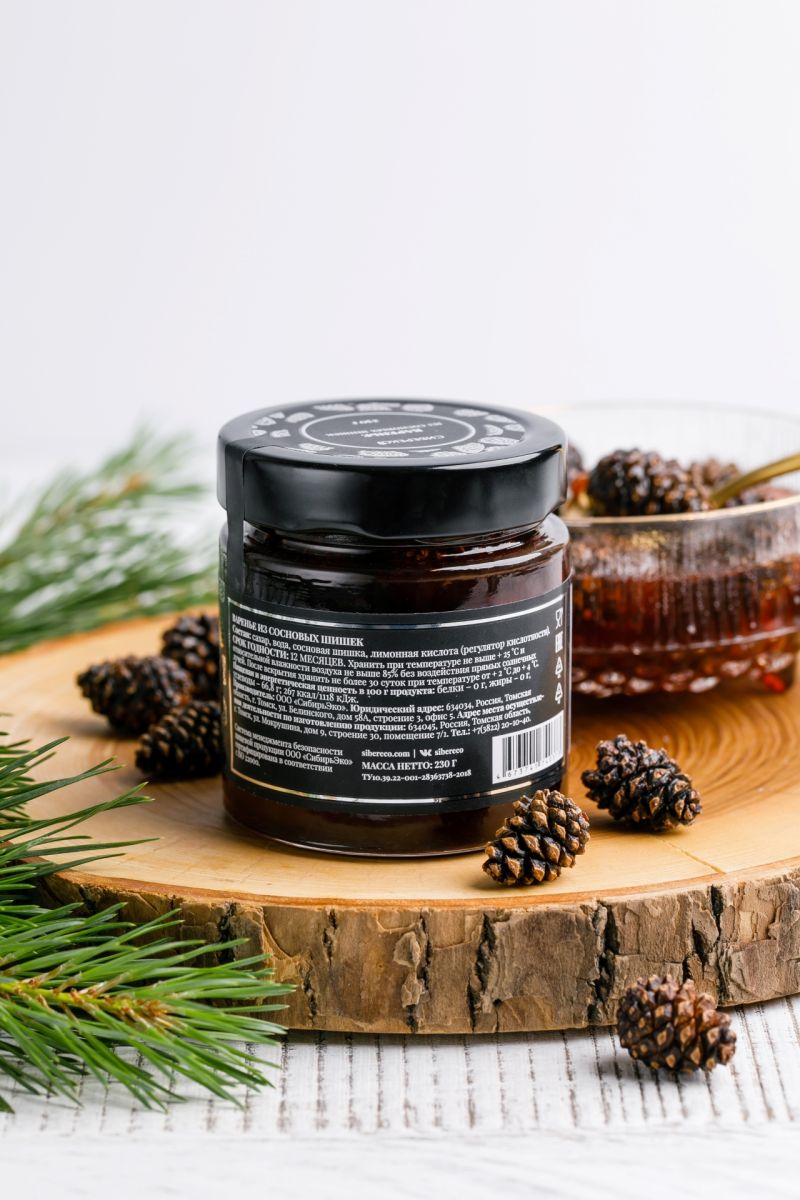 Представляем Вам настоящее Сибирское угощение для любого случая! Сосновое варенье от "Сибереко" - это Ваш лучший выбор! Варенье из шишек заслуживает статуса традиционной таёжной сладости! Наше лакомство отличается особой мягкостью сосновых шишечек, ведь их собирают в особое время, когда они молоды и богаты ценнейшими фитонцидами, биофлавоноидами и витаминами!