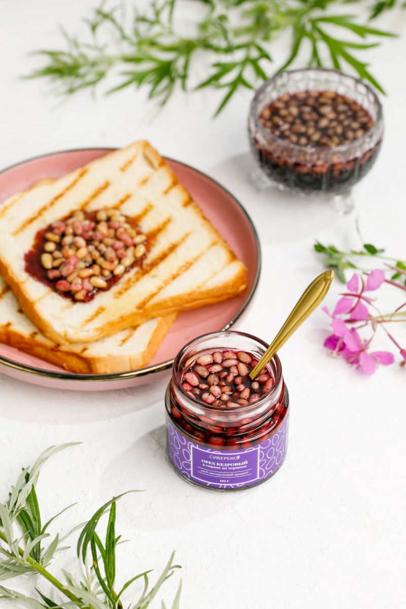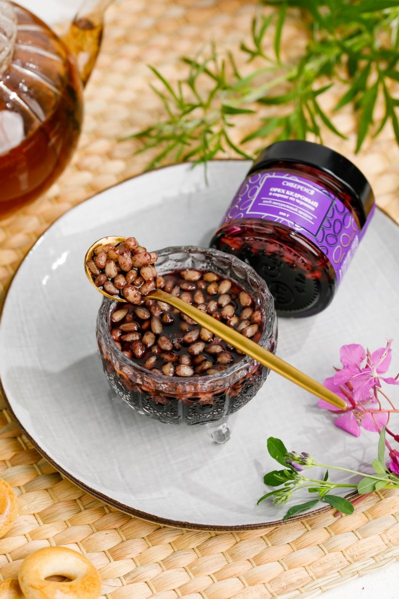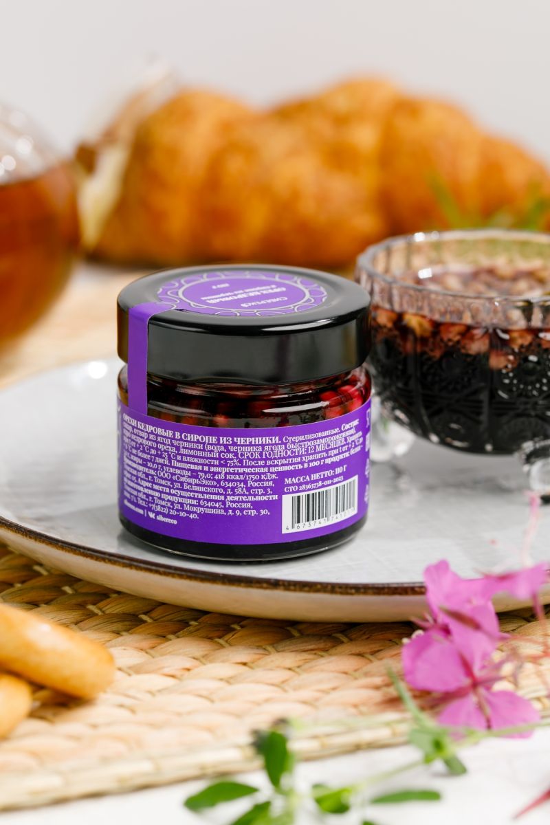 Читать все статьиЯдро кедрового ореха в сиропе из черники 110 г