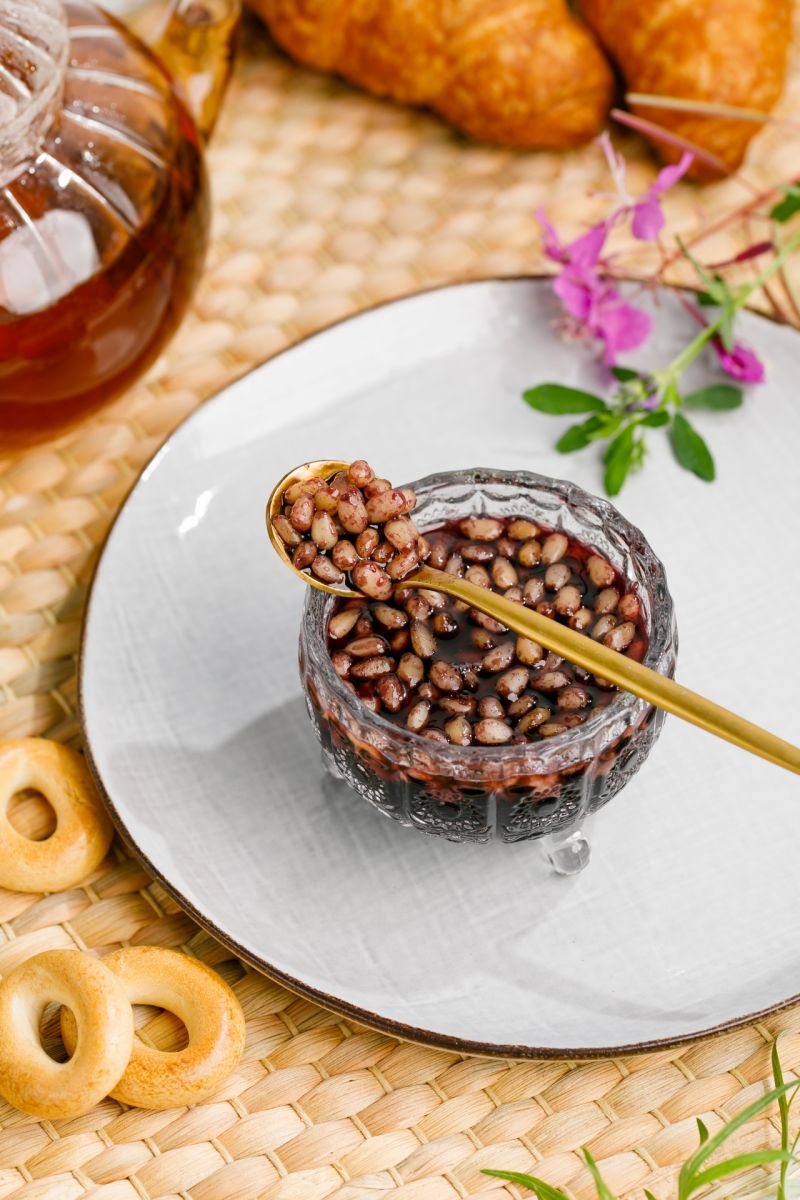 Разделить впечатления от вкусного угощения в кругу дорогих сердцу людей - что может быть лучше? Густой и полезный черничный сироп отлично сочетается с кедровыми орешками. Такое угощение придётся по вкусу самым искушённым сладкоежкам.