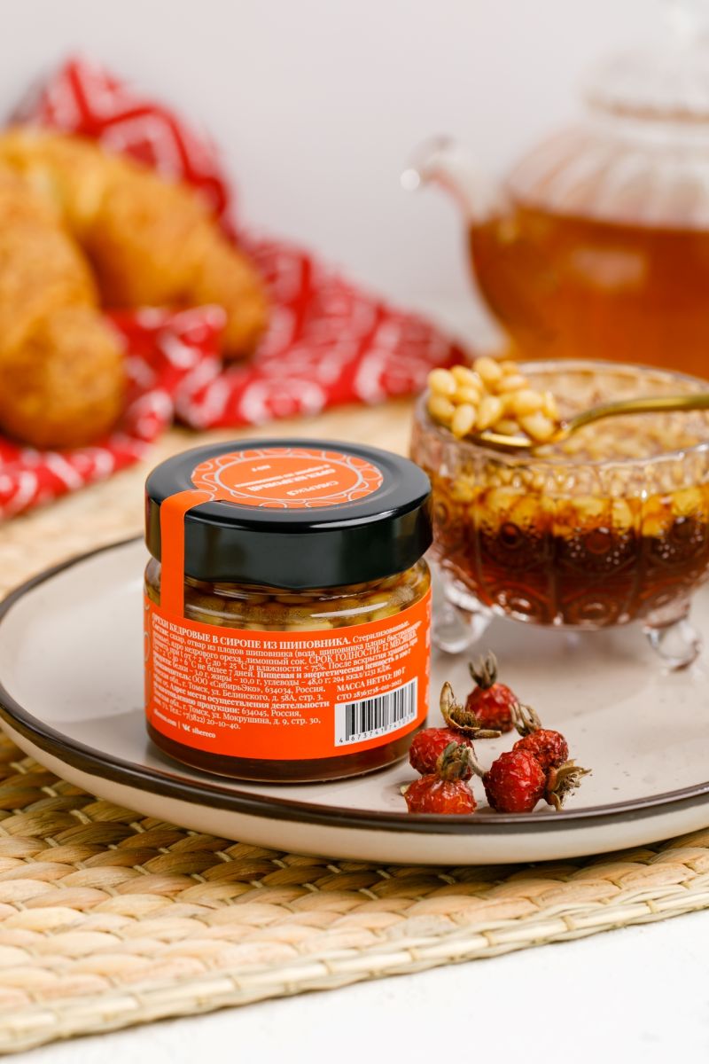 Читать все статьиЯдро кедрового ореха в сиропе из шиповника 110 г