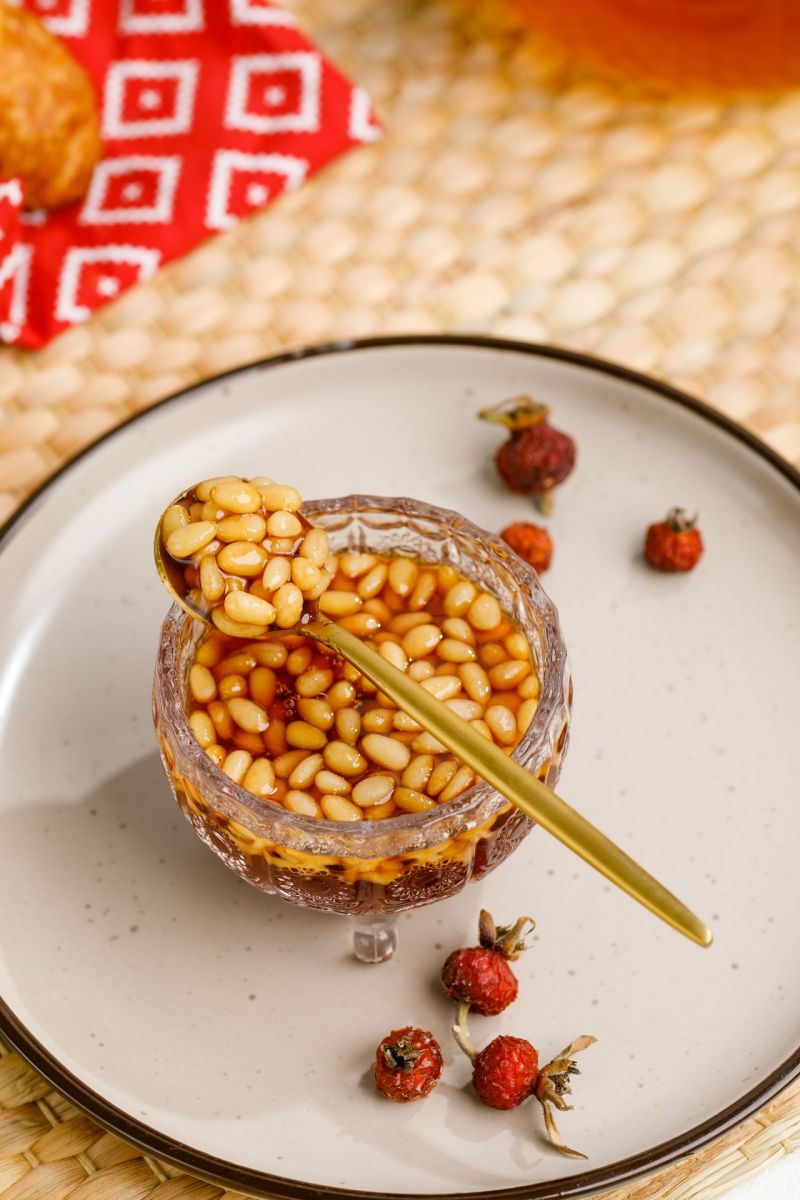 Целебные свойства шиповника сохранены в сиропе, они поддержат иммунитет всей семьи в сезон простуд. Кедровые орешки долго томятся в сиропе, благодаря чему становятся мягкими, нежными и сочными.