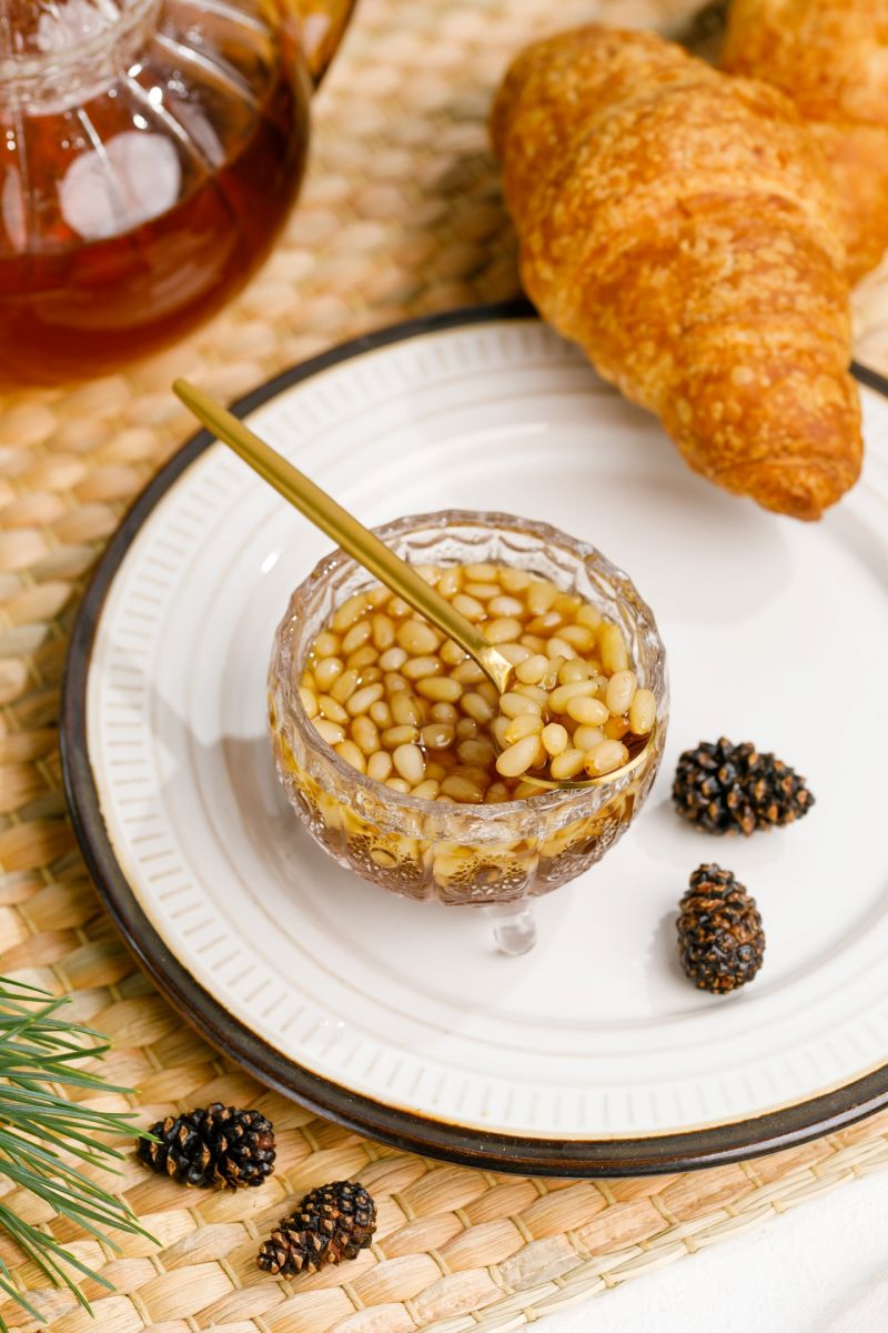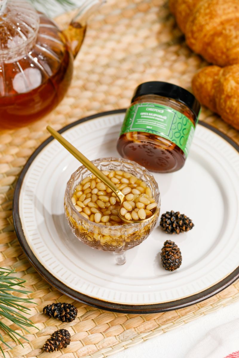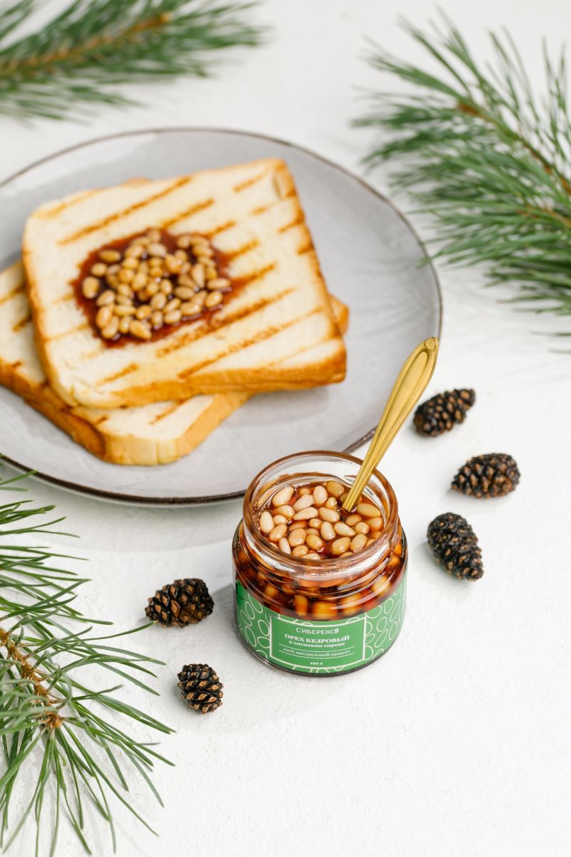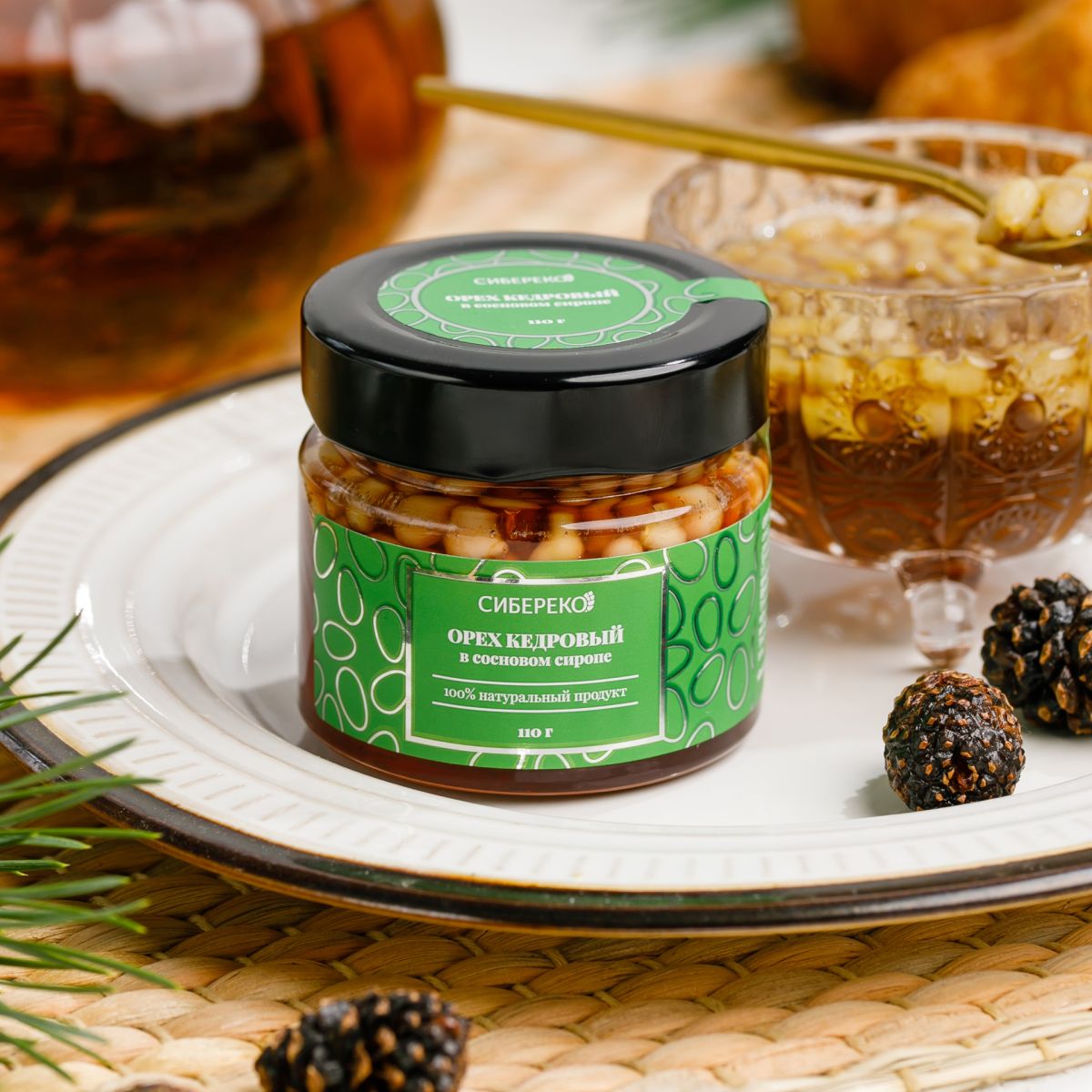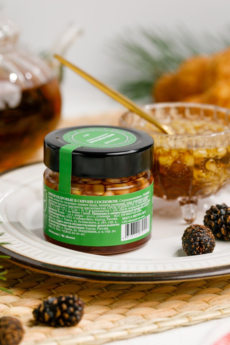Ядро кедрового ореха в сосновом сиропе - самый сибирский из всех наших десертов! Сосновый сироп богат витаминами, он вобрал в себя все полезные вещества из молодых сосновых шишечек. Кедровые орешки обладают нежным вкусом и прекрасно сочетаются с терпким сиропом!